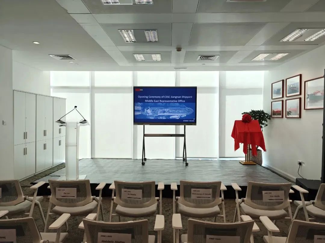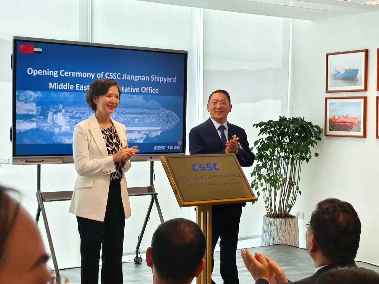 10月10日,中國船舶集團江南造船中東代表處揭牌儀式,在阿聯酋首都阿布紮比舉行。