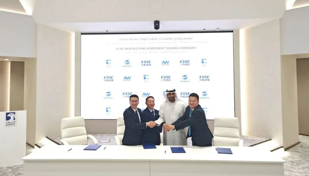 揭牌儀式後,江南造船與阿布紮比國家石油集團物流和服務公司(ADNOC L&S)和萬華化學集團的合資公司AW航運公司續簽了2艘93000立方米超大型液氨運輸船(VLAC) 。