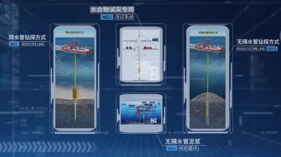 4種鑽探模式(傳統隔水管、傳統無隔水管、輕型隔水管、無隔水管泥漿閉式循環)