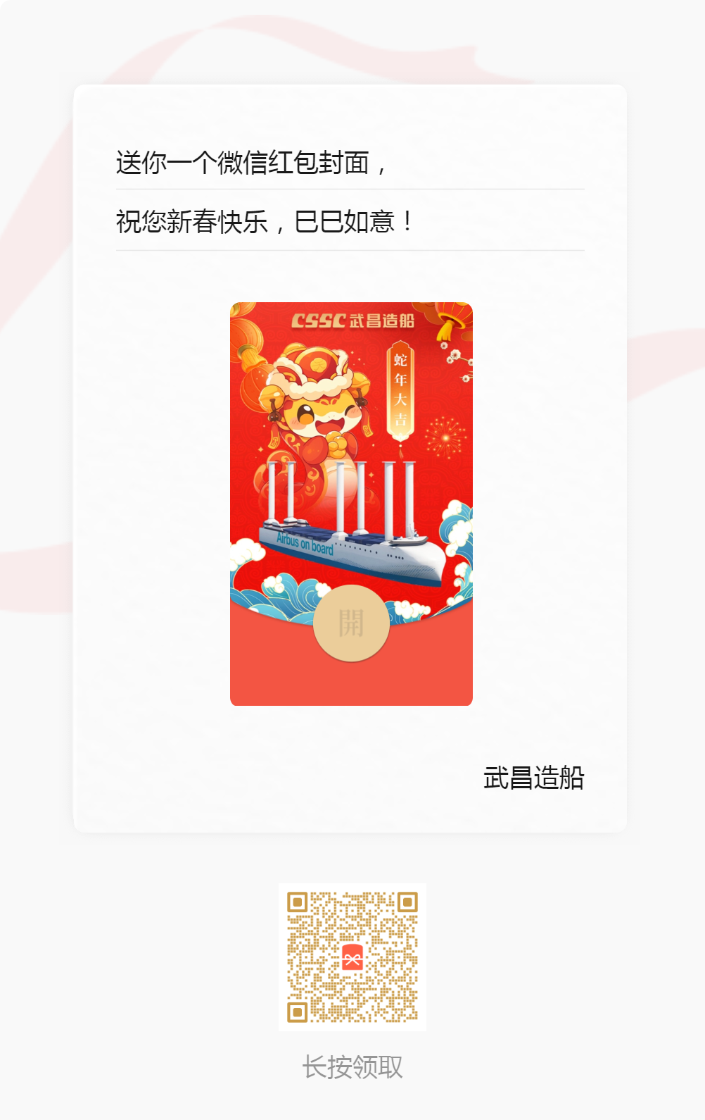 | 紅包封麵:武昌造船/黃埔文衝/七〇二所/中船發動機/中船動力/中船九院/中船郵輪/七二五所