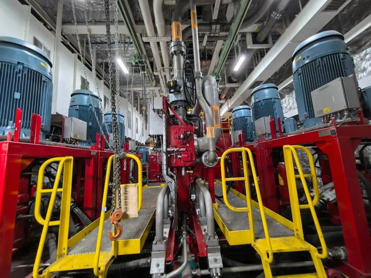 “夢想”號鑽井係統提升能力強、反應速度快,離不開配套的液壓提升係統。係統配有12台泵,裝機容量達4100千瓦,高壓管路長達8000多米,直徑達270多毫米,最高壓力為350公斤/平方厘米,是家庭高壓鍋耐壓的175倍。