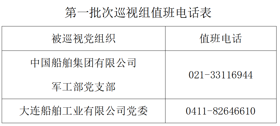 巡視期間,集團公司黨組巡視組設置值班電話和聯係信箱,主要受理反映被巡視黨組織領導班子及其成員、下一級黨組織領導班子主要負責人和重點崗位領導幹部問題的來信、來電、來訪,重點關注違反政治紀律、組織紀律、廉潔紀律、群眾紀律、工作紀律、生活紀律以及巡視整改等方麵問題反映。第一批次巡視受理信訪截止時間為4月16日。