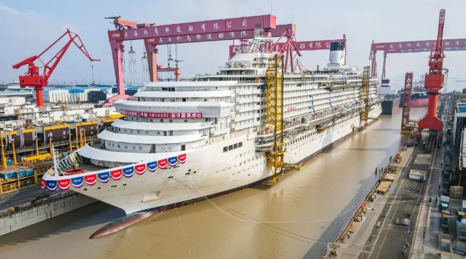 “愛達·花城號”由中船集團旗下外高橋造船於2022年8月開工建造,去年4月入塢搭載,今年1月實現全船貫通。“愛達·花城號”長341米、寬37.2米、約14.19萬總噸,相比首艘國產大型郵輪“愛達·魔都號”體量更大、建造物量更多,對設計建造管理能力提出了更高要求。目前,“愛達·花城號”整體建造進度已超過70%,比“愛達·魔都號”起浮時總進度提前12%,結構總裝周期縮短至9個月,標誌著我國大型郵輪建造技術邁上了新台階。