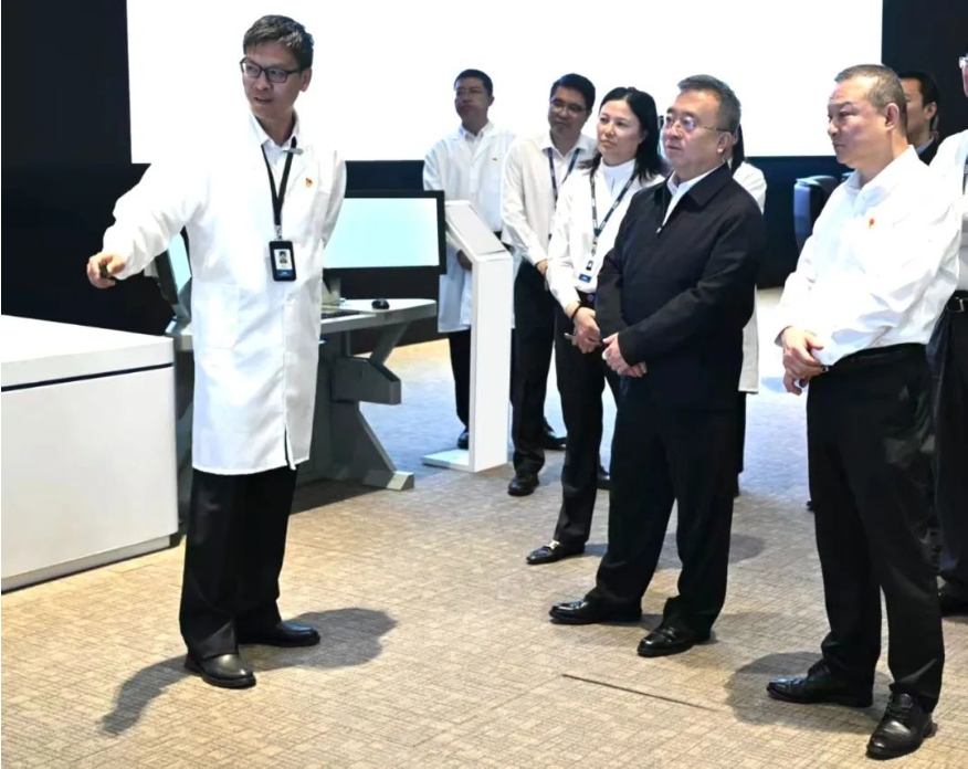 王國強深入科研生產一線,調研了相關實驗室和產品,與首席專家、領軍人才、一線科研人員交流,聽取了二級管理單位負責人關於企業發展、科技創新、人才培養、黨的建設、文化建設等情況彙報。