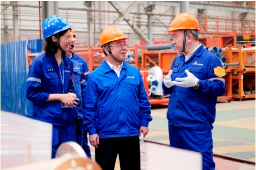 王國強深入科研生產一線,察看了船塢、智能生產線、重點實驗室和產品,進行了安全生產檢查,與一線科研人員、員工進行深入交流,聽取了生產經營、科技研發、人才培養、黨的建設等情況彙報。