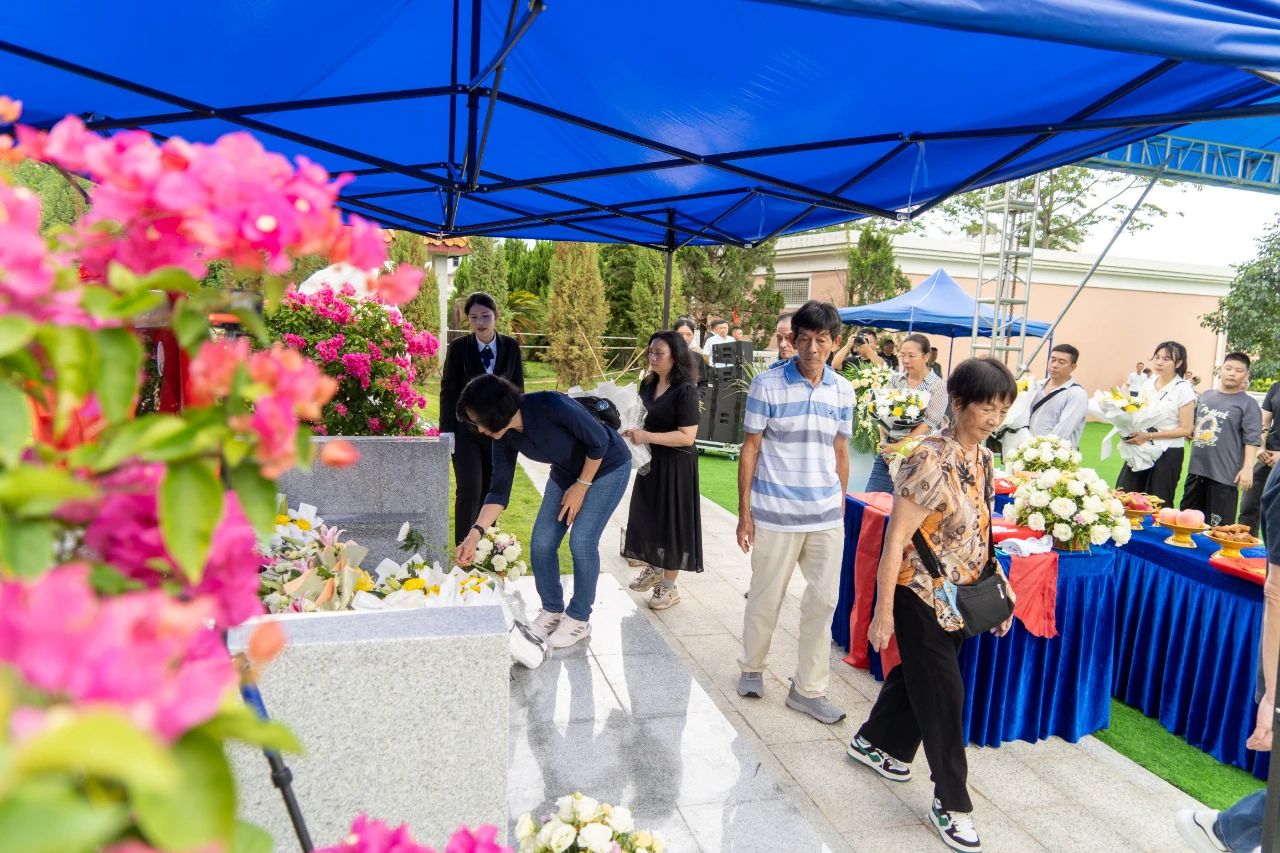 親qin屬shu代dai表biao擦ca拭shi墓mu碑bei後hou,在zai禮li賓bin人ren員yuan的de引yin導dao下xia將jiang黃huang旭xu華hua院yuan士shi的de骨gu灰hui安an放fang進jin墓mu穴xue。人ren們men向xiang黃huang旭xu華hua院yuan士shi墓mu碑bei行xing三san鞠ju躬gong禮li,並bing敬jing獻xian鮮xian花hua,以yi簡jian約yue而er莊zhuang重zhong的de儀yi式shi,送song別bie國guo之zhi脊ji梁liang。
