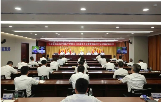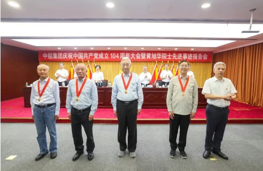 7月1日,中國船舶集團有限公司召開慶祝中國共產黨成立104周年大會暨黃旭華院士先進事跡報告會。中央第七指導組成員、國務院國資委黨建局相關同誌出席會議。中船集團黨組書記、董事長徐鵬出席會議並講話,帶領與會人員重溫入黨誓詞,並為老黨員代表頒發“光榮在黨50年”紀念章。黨組副書記、董事、總經理王國強主持會議。黨組副書記、董事賈海英宣讀了《關於在全集團深入開展黃旭華院士先進事跡“四學四做”活動的倡議書》。中船集團在滬黨組成員參加會議。