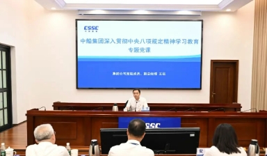 按照黨中央統一部署,根據中國船舶集團有限公司黨組學習教育工作安排,七一前後,中船集團黨組成員以分片區覆蓋、現場+視shi頻pin的de方fang式shi講jiang授shou深shen入ru貫guan徹che中zhong央yang八ba項xiang規gui定ding精jing神shen學xue習xi教jiao育yu專zhuan題ti黨dang課ke,圍wei繞rao學xue習xi習xi近jin平ping總zong書shu記ji關guan於yu加jia強qiang黨dang的de作zuo風feng建jian設she重zhong要yao論lun述shu的de收shou獲huo感gan悟wu,貫guan徹che落luo實shi中zhong央yang八ba項xiang規gui定ding精jing神shen的de成cheng效xiao經jing驗yan,違wei反fan中zhong央yang八ba項xiang規gui定ding精jing神shen的de危wei害hai,整zheng改gai整zheng治zhi問wen題ti、推動改進作風的實際舉措等方麵進行深入交流。