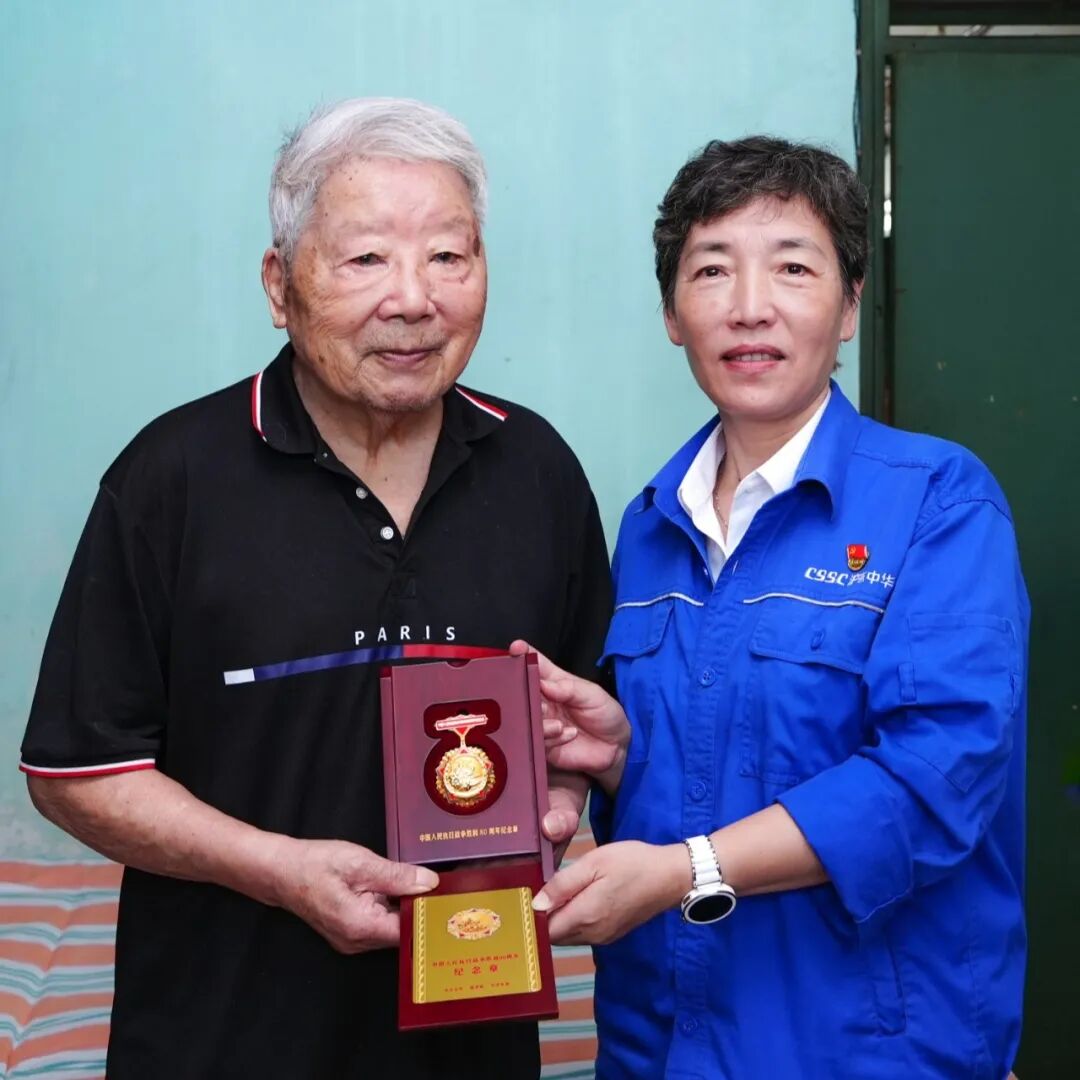 近期,中船集團離退休幹部局及滬東中華、黃埔文衝、七一〇所、中船河柴、中船風帆、昆船公司、中船綠洲、華南船機等單位分別走訪慰問抗戰老兵,轉達組織的關心和問候,向他們致以崇高敬意和誠摯祝願,並送上“中國人民抗日戰爭勝利80周年”紀念章。抗戰勝利80周年紀念活動前夕,中船集團將累計走訪49名抗戰老兵。
