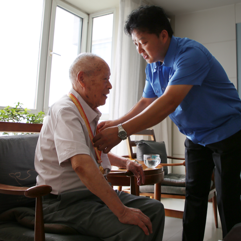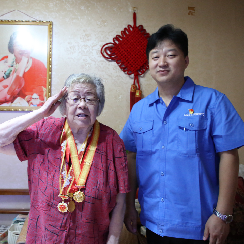 在紀念中國人民抗日戰爭暨世界反法西斯戰爭勝利80周年之際,中國船舶集團有限公司黨組副書記、董事賈海英走訪慰問抗戰老兵焦英傑,頒發“中國人民抗日戰爭勝利80周年”紀念章,並代表集團公司黨組向他致以崇高敬意和誠摯問候。