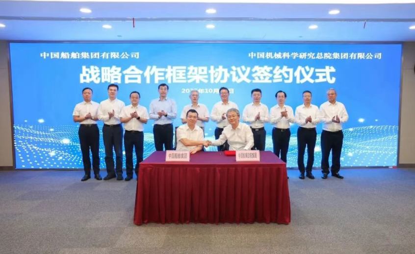10月17日,中國船舶集團有限公司與中國機械科學總院集團有限公司在上海簽署戰略合作框架協議。中船集團黨組書記、董事長徐鵬,中國機械總院黨委書記、董事長王德成出席簽約儀式。中船集團黨組成員、副總經理彭原璞,中國機械總院集團副總經理薑超分別代表雙方在協議上簽字。簽約前,雙方就進一步加強溝通交流、深化多領域合作進行了交流探討。