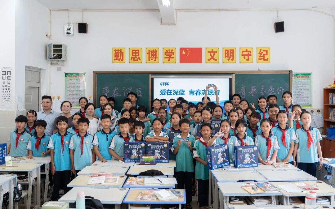同時,誌願者為94名小學生帶去3堂科普課程,回顧人民海軍發展曆程,厚植孩子們的愛國情懷;精講民用船舶種類,點亮孩子們的探索精神;揭秘LNG船關鍵技術,展現中國“智”造實力,增強孩子們的自豪之感。課程中,誌願者們深入淺出講解,學生們全神貫注學習,同學們感受到中國船舶“智領深藍”的魅力,紛紛提問:護衛艦一次能航行多遠?一艘LNG船能載多少噸液化天然氣?“海上帶貨王”到底有多大?……孩子們展現出對國防和海洋的濃厚興趣。