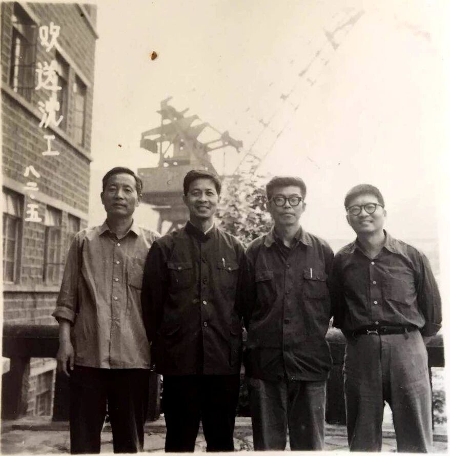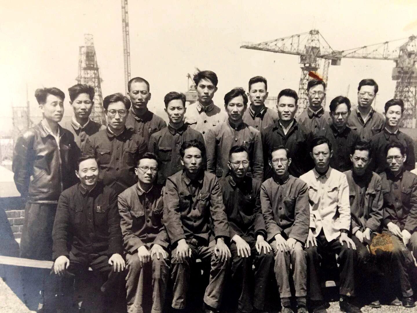 20世紀60年代沈聞孫(二排左三)與同事在造船現場合影