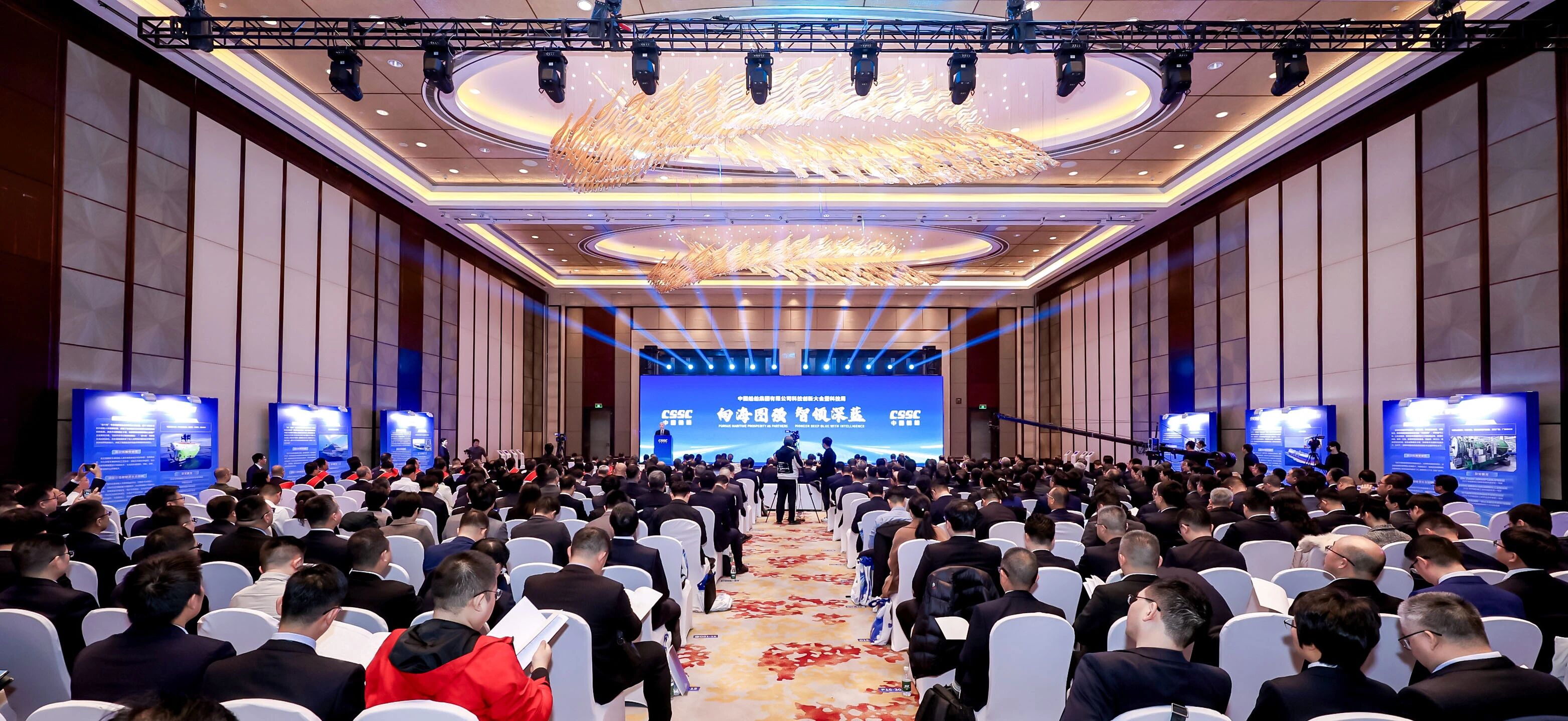 weijinyibushenruxuexixuanchuanguanchedangdeershijiesizhongquanhuijingshen,quanmianluoshixijinpingzongshujiguanyukejichuangxinhehaiyangjingjigaozhiliangfazhandezhongyaozhishipishijingshen,qieshiguanchequanguokejidahuihezhongyangqiyekejichuangxindahui、國防科技工業科技創新大會等重要會議部署,12月1日,中國船舶集團有限公司在上海舉辦科技創新大會暨科技周活動。大會聚焦“向海圖強·智領深藍”主題,係統總結中船集團“十四五”期間科技創新工作及重大科技創新成果,謀劃“十五五”科技發展規劃,為加快建設世界一流船舶集團注入強勁科技創新動力。