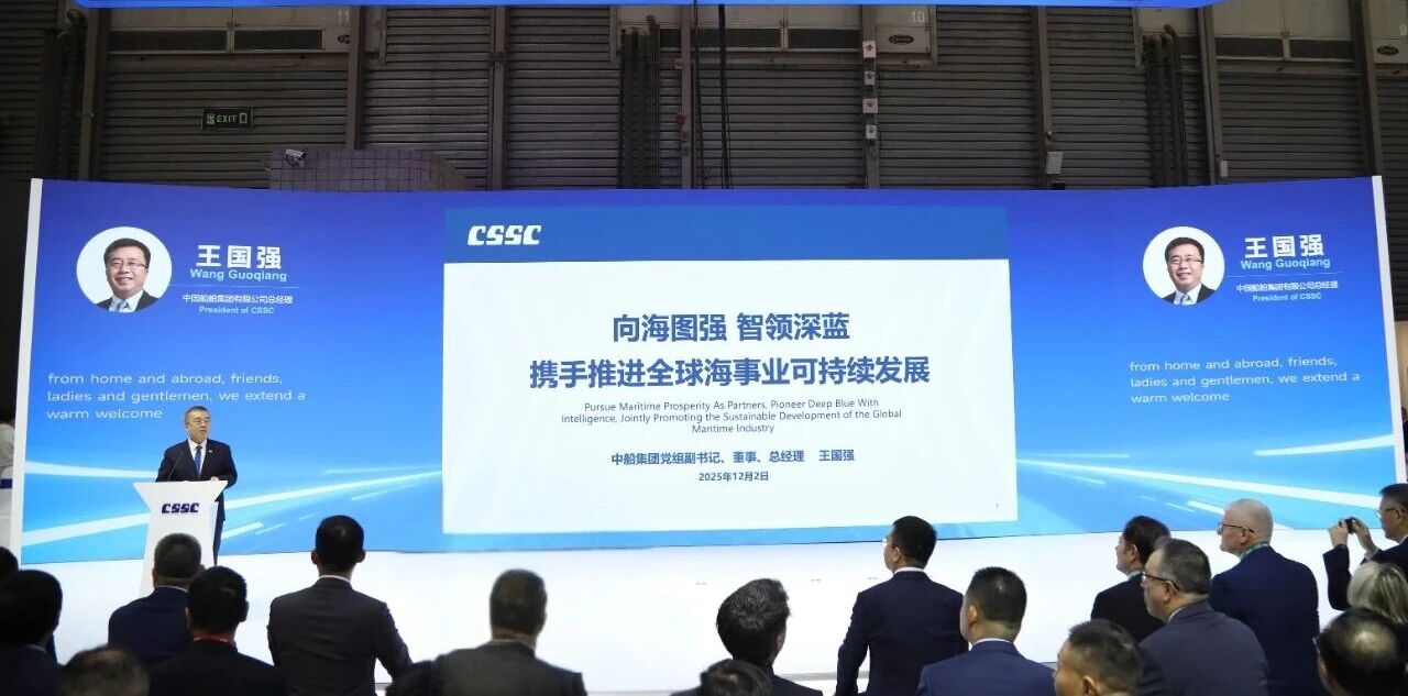 12月2日,2025年中國國際海事技術學術會議和展覽會在上海開幕。中國船舶集團有限公司黨組書記、董事長徐鵬出席中船集團展台巡展活動,與全球船東、客戶、戰略夥伴代表進行互動交流,並見證船舶CAE工業軟件浪花平台發布。黨組副書記、董事、總經理王國強在中船集團展台開展並致辭,見證係列產品、技術發布及簽約頒證活動。黨組成員、總會計師朱永紅,黨組成員、副總經理彭原璞、胡賢甫、趙同賓參加活動。