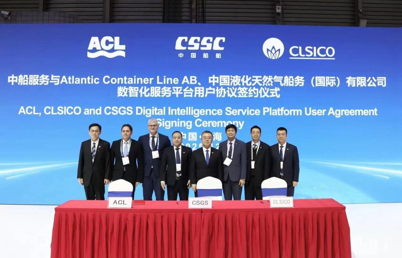 中國液化天然氣船務(國際)有限公司(CLSICO)與意大利Grimaldi集團旗下Atlantic Container Line(ACL)作為中船服務的長協服務簽約客戶,與中船服務正式簽訂數智化服務平台用戶協議,標誌著CSGS品牌首批標杆客戶成功落地。這一合作不僅體現了客戶對中船集團整船服務能力的信任,也為CSGS全球服務品牌的推廣樹立了典範。