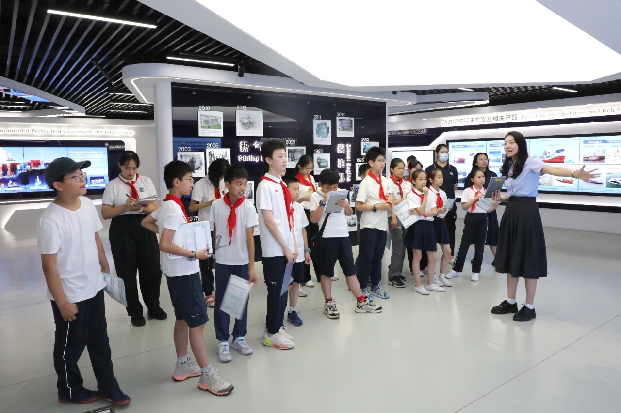 ▶ 七一一所與中學聯合開展主題研學,讓學生走進實驗室與生產車間,近距離感受船舶動力技術創新,其精心打磨的係列科普課程《我心中的大船》《抓住二氧化碳》《咖啡杯裏的科學奧秘》等還融入了區域“大思政課”實踐教育。