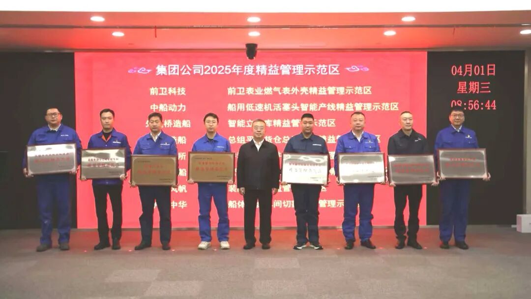 會上,王國強為中船集團2025年度精益管理示範區授牌。經濟運行部介紹集團公司精益管理工作推進情況,外高橋造船、中船動力、中南裝備、江南造船作精益管理工作情況交流。